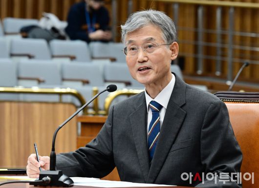 아시아투데이 이병화 기자 = 조희대 대법원장 후보자가 6일 국회에서 열린 인사청문회에서 의원들의 질의에 답변하고 있다.