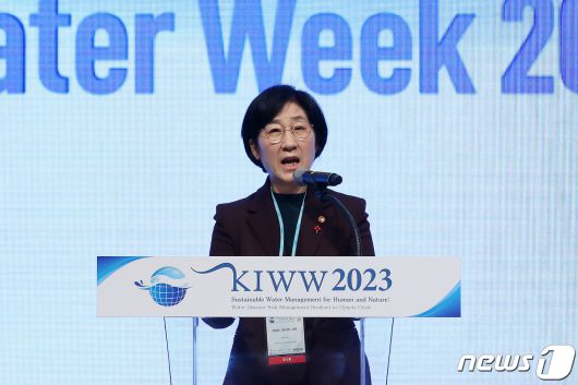 (대구=뉴스1) 공정식 기자 = 한화진 환경부 장관이 6일 오전 대구 북구 엑스코에서 열린 '대한민국 국제 물주간 2023(KIWW 2023)' 개막식에서 개회사를 하고 있다. 2023.12.6/뉴스1jsgong@news1.krCopyright ⓒ 뉴스1. All rights reserved. 무단 전재 및 재배포, AI학습 이용 금지.