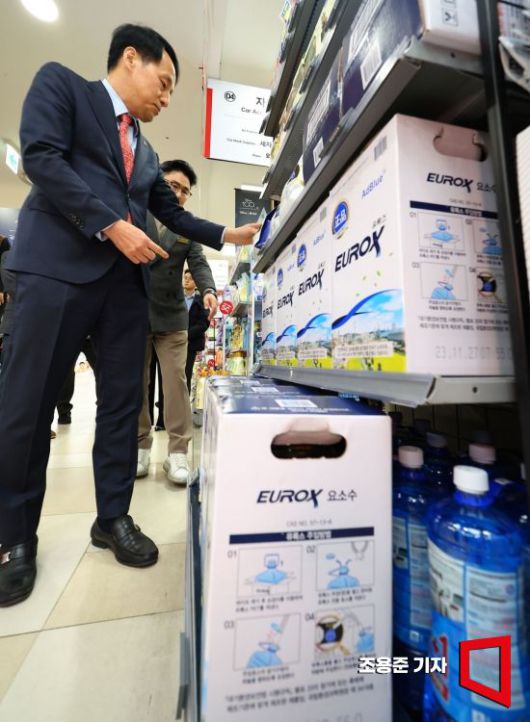 요소수 관련 현장 점검에 나선 장영진 산업통상자원부 제1차관이 6일 서울 송파구 롯데마트 월드타워점에서 박석재 점장의 설명을 들으며 진열된 상품을 살펴보고 있다. 사진=조용준 기자 jun21@ <ⓒ투자가를 위한 경제콘텐츠 플랫폼, 아시아경제(www.asiae.co.kr) 무단전재 배포금지>