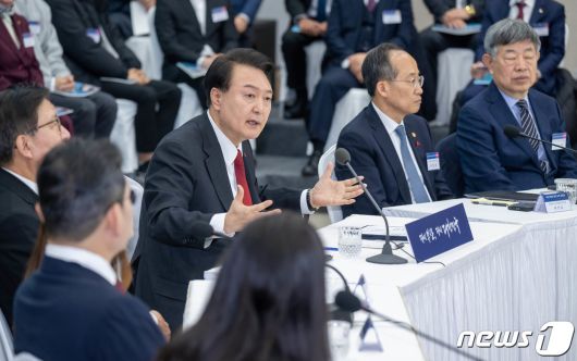 (부산=뉴스1) 부산사진공동취재단 = 윤석열 대통령이 6일 부산 동구 부산항국제전시컨벤션센터에서 열린 '부산시민의 꿈과 도전 격려 간담회'에서 모두발언을 하고 있다. 2023.12.6/뉴스1
