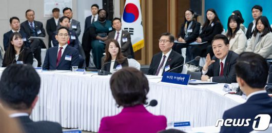 (부산=뉴스1) 부산사진공동취재단 = 윤석열 대통령이 6일 부산 동구 부산항국제전시컨벤션센터에서 열린 '부산시민의 꿈과 도전 격려 간담회'에서 모두발언을 하고 있다. 2023.12.6/뉴스1