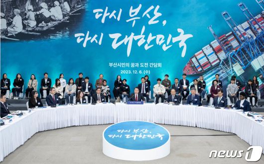 (부산=뉴스1) 부산사진공동취재단 = 윤석열 대통령이 6일 부산 동구 부산항국제전시컨벤션센터에서 열린 '부산시민의 꿈과 도전 격려 간담회'에서 모두발언을 하고 있다. 2023.12.6/뉴스1