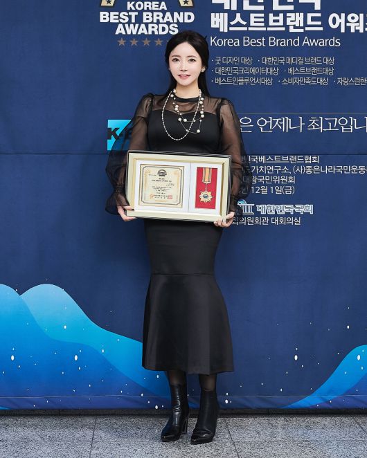 이에 수상을 한 바니빈 이예빈이 기념촬영을 하고 있다.