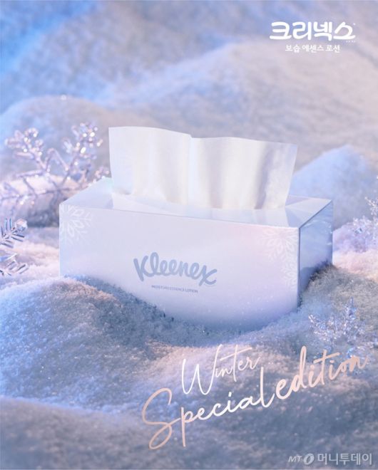 유한킴벌리가 크리넥스 보습 에센스 로션 티슈를 겨울 한정 출시했다. 일반 사이즈, 미니 사이즈 두 가지가 출시됐다.