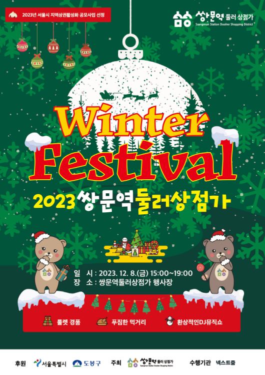 아시아투데이 박아람 기자 = 서울 도봉구가 오는 8일 오후 3~7시 쌍문역 둘러상점가에서 '2023년 쌍문역 둘러상점가 윈터 페스티벌'을 개최한다.