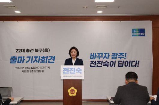 전진숙 전 대통령비서실 행정관이 내년 총선 출마를 공식 선언했다. 더불어민주당 후보로 광주광역시 북구을 지역구에 출마할 예정이다.