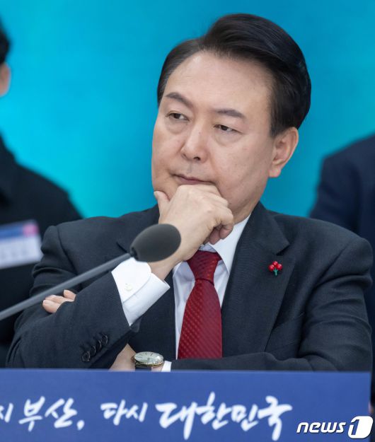 (부산=뉴스1) 부산사진공동취재단 = 윤석열 대통령이 6일 부산 동구 부산항국제전시컨벤션센터에서 열린 '부산시민의 꿈과 도전 격려 간담회'에서 참석자의 발언을 듣고 있다. 2023.12.6/뉴스1
