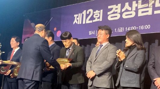 ▲지난 1일 경상남도사회복지센터에서 열린 제12회 경상남도 나눔대회서 장숭우 양산시설관리공단 상임이사가 지역사회공헌 인정기업 인정패를 받고 있다.ⓒ양산시설관리공단 |