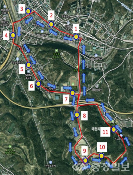 버스운행은 영동군과 운행협약을 맺은 동일버스(주)가 운영하고 노선은 영동역, 시외버스정류소, 전통시장, 농협하나로마트, 보건소, 영동체육관, 힐링관광지, 과일나라테마공원 등을 순환하며 25분 정도 소요된다./영동=손동균기자