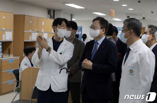 (울산=뉴스1) 김지혜 기자 = 6일 울산대학교병원에 지역 여성 장애인을 위한 '장애친화산부인과'를 개소했다. 이날 조규홍 보건복지부 장관이 참석해 소아전용응급실 등을 둘러보며 관계자의 설명을 듣고 있다.2023.12.6 뉴스1joojiok@news1.krCopyright ⓒ 뉴스1. All rights reserved. 무단 전재 및 재배포, AI학습 이용 금지.