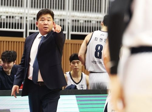 김승기 고양 소노 감독이 5일 수원 KT아레나에서 열린 2023~24 프로농구 정규시즌 수원 kt전에서 선수들에게 작전을 지시하고 있다. 연합뉴스 |