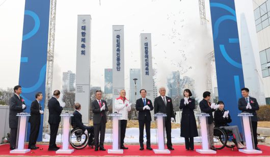 정진완 대한장애인체육회장은 “모든 체육기관이 기다려온 통합청사 입주다. 한 지붕 아래 이웃으로 함께하게 된 국민체육진흥공단, 대한체육회 각 체육기관에 감사하다”면서 “올림픽과 패럴림픽을 함께 치른 올림픽공원은 대한민국의 자랑이며 통합의 상징이다. 함께할 수 있는 청사가 만들어진 것은 전 세계 롤모델이 될 수 있다. 역사적 의미를 되새기며 통합청사 안에서 여러 단체와 소통할 것이며 최선을 다하겠다”고 목소리를 높였다.