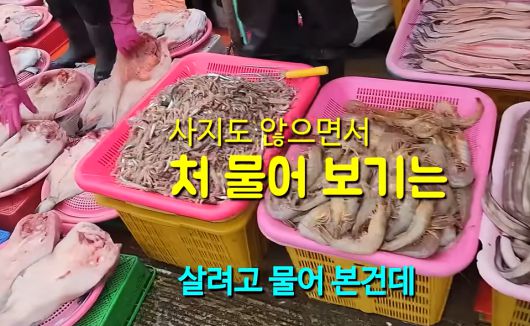영상에는 아내와 함께 어시장을 찾은 유튜버 오지산이 여기저기 둘러보면서 저렴하고 크기가 큰 가성비 좋은 꽃게를 고르려는 내용이 담겼다.