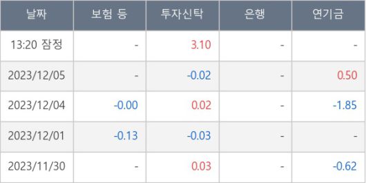 [표] 주요 기관별 순매매량 (단위 만주)