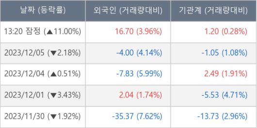 [서울=뉴스핌] 로보뉴스 = 06일 13시 30분 현재 슈어소프트테크(298830)는 외국인과 기관이 각각 16.70 만 주, 1.20 만 주 순매수(잠정) 하면서 전일 대비 11.00% (현재가 6,460원) 상승하고 있다.