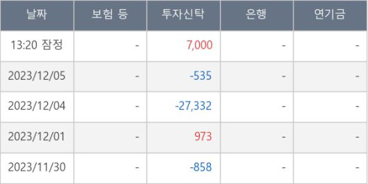 [표] 주요 기관별 순매매량 (단위 주)