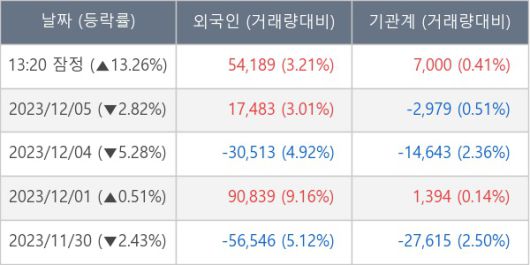 ※ 사모펀드 등 일부 기관의 순매매량은 표시되지 않음