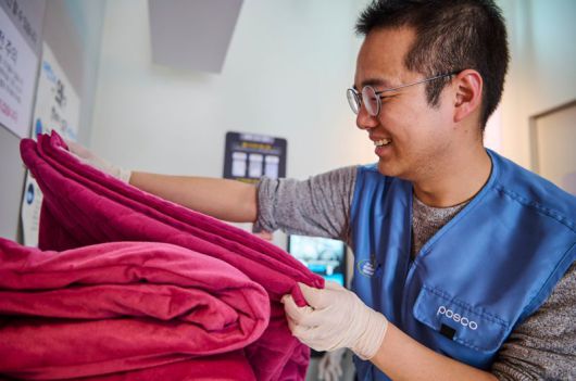 포스코 봉사단이 독거 어르신을 위한 이불빨래 봉사활동을 하고 있다. 포스코 제공 |