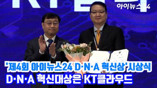 '제4회 아이뉴스24 D·N·A 혁신상' 시상식이 6일 서울 용산구 드래곤시티 호텔 3층 한라홀에서 열린 가운데 KT클라우드가 과학기술정보통신부장관상인 '혁신대상'을 수상했다.[영상=정소희 기자]