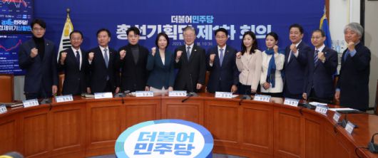 이재명 더불어민주당 대표 등 참석 위원들이 6일 오전 서울 여의도 국회에서 열린 총선기획단 제1차 회의에 앞서 기념촬영을 하고 있다. |
