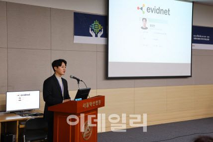 HeLP 챌린지 시상식 및 발표회에서 장은찬 에비드넷 프로가 발표하고 있다. (사진=에비드넷) |