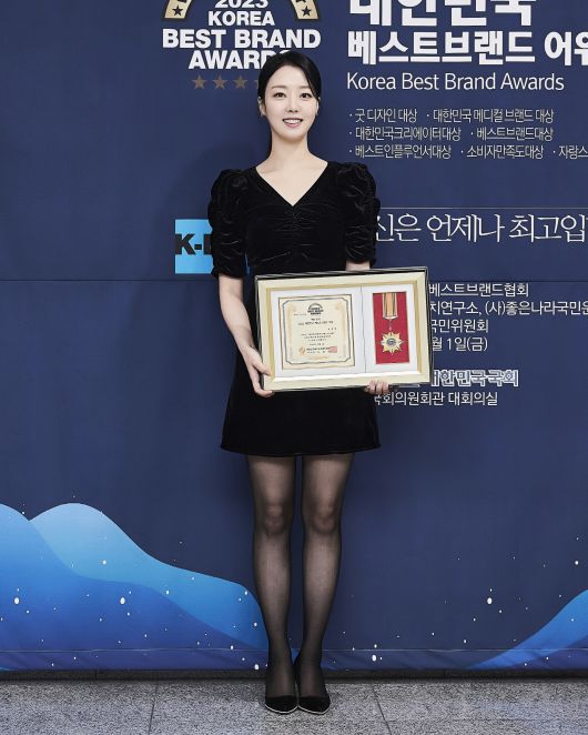 이에 수상을 한 윤다영이 기념촬영을 하고 있다.