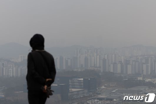 (오산=뉴스1) 이재명 기자 = 수도권 초미세먼지 농도가 '나쁨' 수준을 보인 6일 경기도 오산시 보적사에서 바라본 도심이 미세먼지 영향으로 뿌옇게 보이고 있다. 2023.12.6/뉴스1
