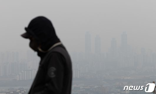 (오산=뉴스1) 이재명 기자 = 수도권 초미세먼지 농도가 '나쁨' 수준을 보인 6일 경기도 오산시 보적사에서 바라본 도심이 미세먼지 영향으로 뿌옇게 보이고 있다. 2023.12.6/뉴스1