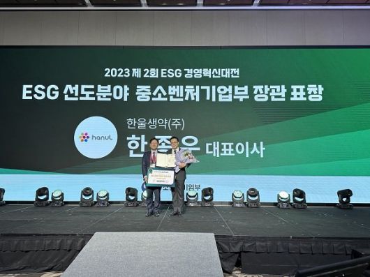 한울생약이 중소벤처기업부가 주관하는 2023년 ‘ESG 경영혁신대전’에서 중소벤처기업부 장관상을 수상했다.