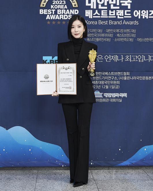 이에 수상을 한 장혜리가 기념촬영을 하고 있다.
