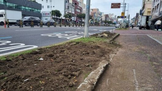 중앙차로제 변경사업으로 가로수가 제거된 모습. 제주참여환경연대 제공 |