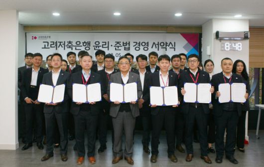 문윤석 고려저축은행 대표를 포함한 임직원들은 서약서에 서명하며 적극적인 윤리·준법 경영 실천 및 청렴한 조직문화 조성에 앞장설 것을 다짐했다.