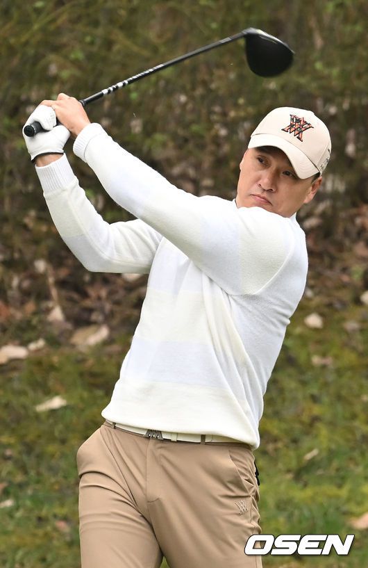 [OSEN=이천, 김성락 기자] 6일 오전 경기도 이천시 H1 클럽에서 제40회 KBO 야구인 골프대회가 열렸다. 4번홀 두산 이승엽 감독이 티샷을 하고 있다. 2023.12.06 / ksl0919@osen.co.kr