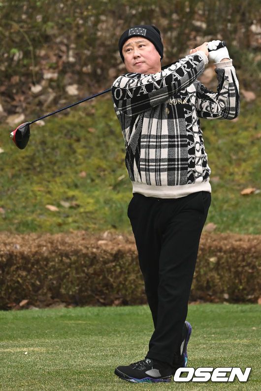 [OSEN=이천, 김성락 기자] 경기도 이천시 H1 클럽에서 제40회 KBO 야구인 골프대회가 열렸다. 4번홀 롯데 김태형 감독이 티샷을 하고 있다. 2023.12.06 / ksl0919@osen.co.kr