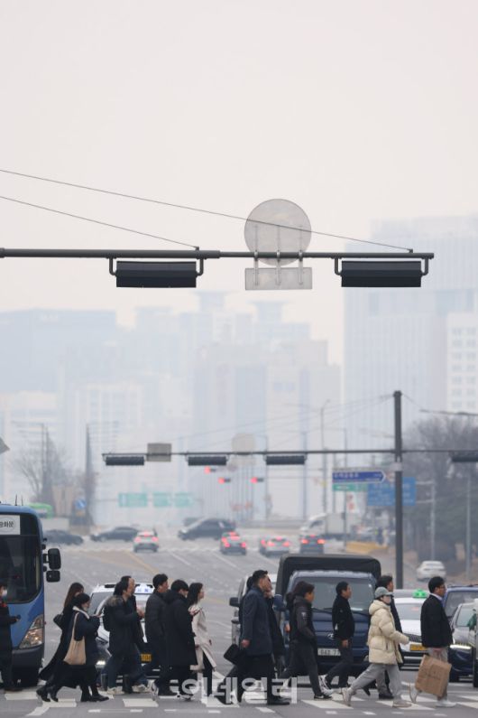 [이데일리 이영훈 기자] 강원영동 등 일부 지역을 제외한 전국 초미세먼지 농도가 '나쁨' 수준인 6일 오전 서울 여의도에서 바라본 마포 일대가 뿌옇게 보이고 있다.