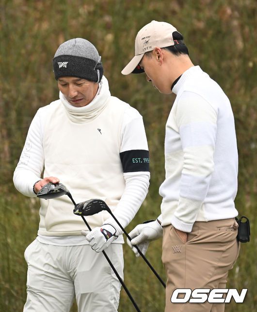 [OSEN=이천, 김성락 기자] 6일 오전 경기도 이천시 H1 클럽에서 제40회 KBO 야구인 골프대회가 열렸다. 4번홀 LG 염경엽 감독, 두산 이승엽 감독이 티샷을 준비하고 있다. 2023.12.06 / ksl0919@osen.co.kr