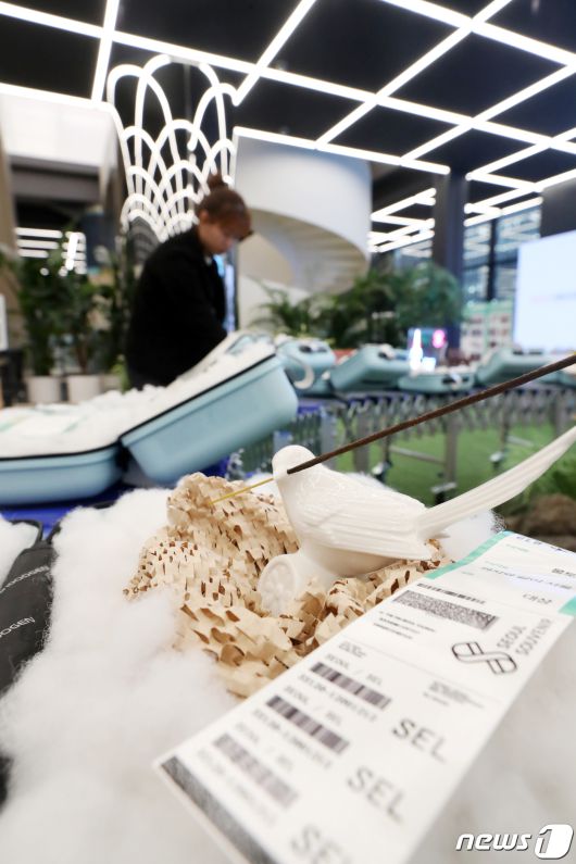 (서울=뉴스1) 이승배 기자 = 6일 오후 서울 종로구 서울관광플라자 여항자카페에서 시민들이 '제11회 서울상징 관광기념품 공모전' 수상작들을 살펴보고 있다. 앞서 서울시는 공모전을 통해 23개 작품을 선정했고 전문가 일대일 멘토링을 거쳐 디자인과 패키징 등을 개선했다. 2023.12.6/뉴스1