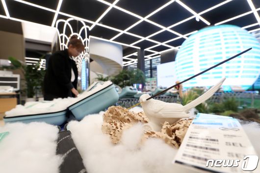 (서울=뉴스1) 이승배 기자 = 6일 오후 서울 종로구 서울관광플라자 여항자카페에서 시민들이 '제11회 서울상징 관광기념품 공모전' 수상작들을 살펴보고 있다. 앞서 서울시는 공모전을 통해 23개 작품을 선정했고 전문가 일대일 멘토링을 거쳐 디자인과 패키징 등을 개선했다. 2023.12.6/뉴스1