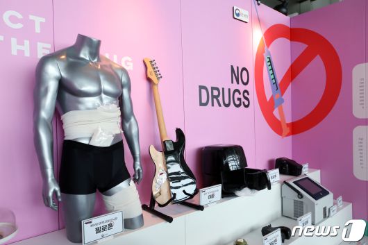 지난 7월 인천국제공항 제1터미널 출국장에서 열린 2023년 상반기 마약 단속 동향 발표 및 마약류 밀반입 예방 캠페인에 마약류와 밀반입 적발 사례, 탐지 장비 등이 전시돼 있다. ⓒ News1 박정호 기자 |