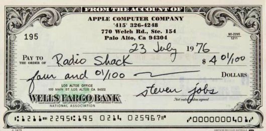 BI에 따르면, 경매업체 RR옥션이 주관하는 경매에 잡스가 1976년 7월23일 ‘애플 컴퓨터 컴퍼니’(현 애플) 소속으로 발행한 4.01달러(약 5259원) 수표가 출품됐다.