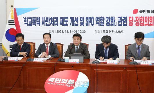 당정은 이날 국회에서 ‘학교폭력 사안처리 제도 개선 및 SPO 역할 강화 당정협의회’를 열어 이같이 결정했다고 유의동 국민의힘 정책위의장이 밝혔다.