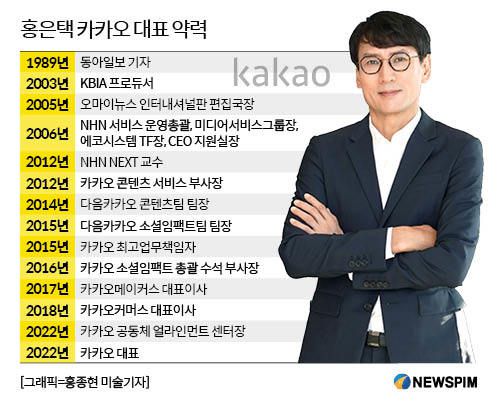 [서울=뉴스핌] 양태훈 기자 = 1963년생인 홍은택 카카오 대표이사는 언론인 출신으로 동아일보, 오마이뉴스 등을 거쳐 2005년 NHN에 입사하면서 IT 업계에 발을 들였다. 그는 2012년 카카오에 합류해 콘텐츠 및 커머스 사업을 이끌었으며, 2022년 7월 카카오의 각자 대표로 선임됐다.