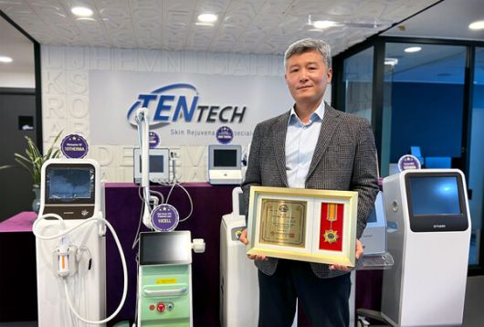 이에 수상을 한 텐텍 한동옥 대표가 기념촬영을 하고 있다.