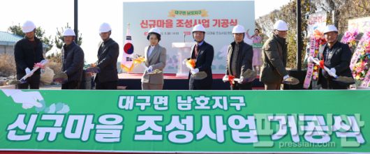 6일 군에 따르면 전날 대구면 남호지구에서는 신규마을 조성사업 기공식이 열렸다. 기공식에는 강진원 군수 및 ㈜전노봉 관계자를 비롯하여 지역 주민, 입주 예정자 등 100여 명이 참석한 가운데 도시민 인구 유입을 위한 신규마을 조성의 기쁨과 기대감을 나누고 안전한 시공을 기원했다.