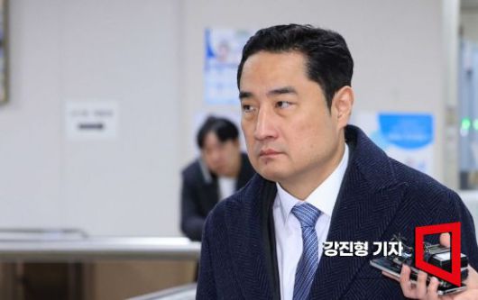 '도도맘' 김미나 씨에게 허위 고소를 종용한 혐의로 재판에 넘겨진 강용석 변호사가 6일 서울 서초구 서울중앙지방법원에서 열린 1심 선고 공판에 출석하고 있다.