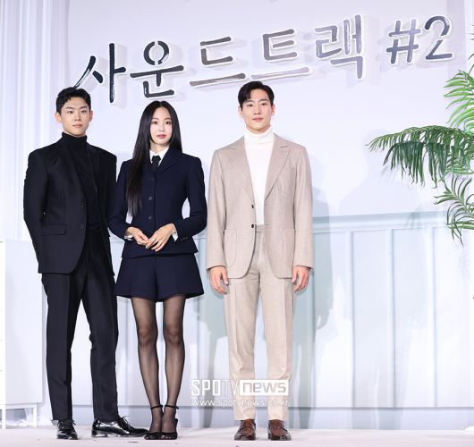[스포티비뉴스=서울, 곽혜미 기자] 디즈니+ 오리지널 시리즈 '사운드트랙#2' 제작발표회가 6일 오후 서울 중구 장충동 앰배서더 서울 풀만 호텔에서 열렸다. 배우 손정혁, 금새록, 노상현이 포즈를 취하고 있다. <저작권자 ⓒ SPOTV NEWS. 무단전재 및 재배포 금지>