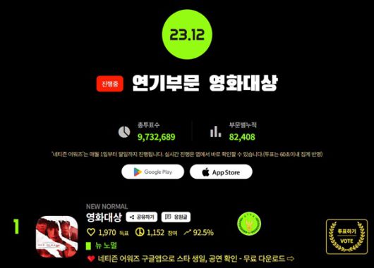 ★스타 인기투표. 국민 투표앱 '네티즌 어워즈'에서 확인하세요