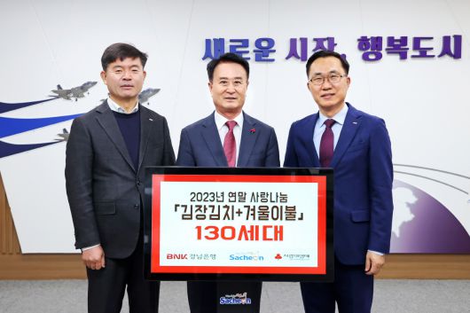 BNK경남은행 삼천포지점(지점장 이상배)이 5일 사천시청을 방문해 성품(김치, 이불 500만 원 상당)을 기탁하는 등 희망 2024 나눔 캠페인에 동참했다.