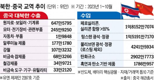중국이 최근 2년에 걸쳐 북한으로부터 반도체와 전기자동차 배터리 등과 관련한 핵심 광물을 적극적으로 수입하고 반대로 올해 들어서는 유엔 안전보장이사회가 제재하던 금수품을 북한에 수출하기 시작한 것으로 확인됐다.