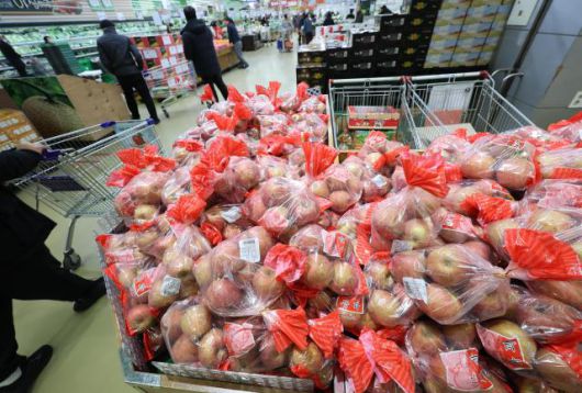 지난 5일 오후 서울 시내 마트에서 소비자들이 사과를 고르고 있다. [사진=연합뉴스] |
